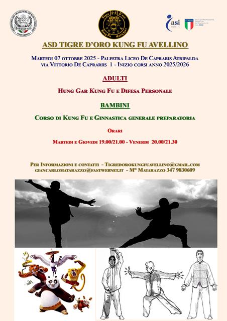 di Kung fu, si dedica, primo in Avellino ed in Campania,
